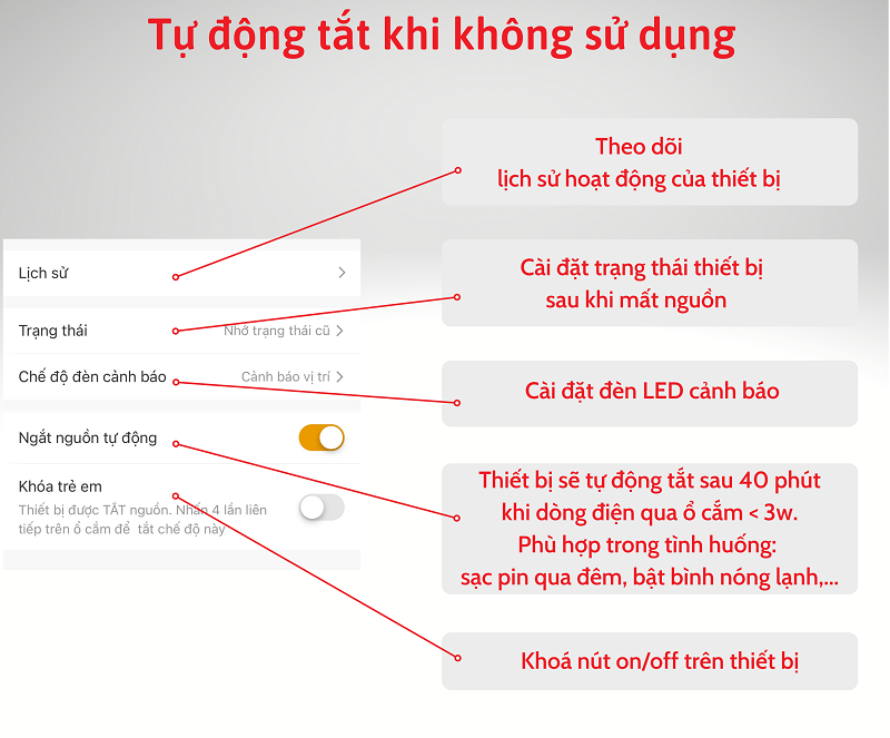 - Điều khiển bật/tắt, giám sát ổ cắm bằng App HANOTECH trên Smart phone mọi lúc mọi nơi qua internet.